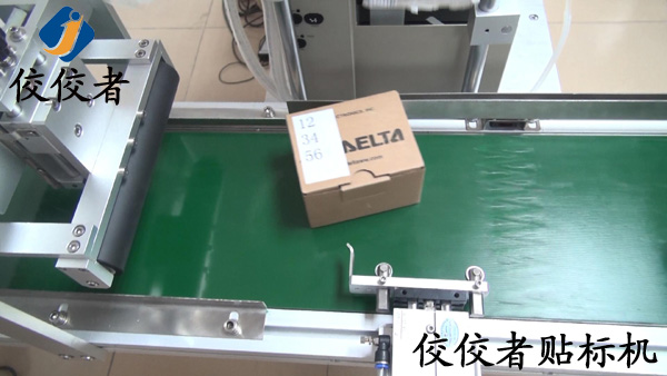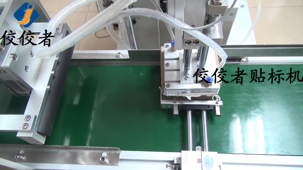 然后,標(biāo)簽會(huì)被轉(zhuǎn)送到輸送帶的上方,等產(chǎn)品經(jīng)過(guò)時(shí)準(zhǔn)確貼上標(biāo)簽,如下圖: