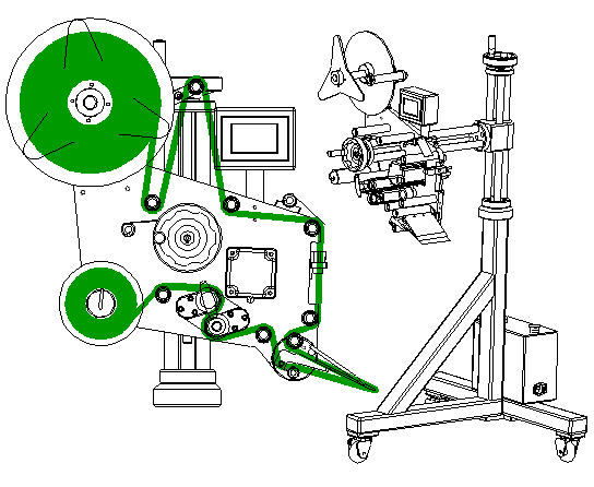 2. 按圖示出標方向,把標簽料卷裝入,再把三角形料盤套上并裝好扭緊;