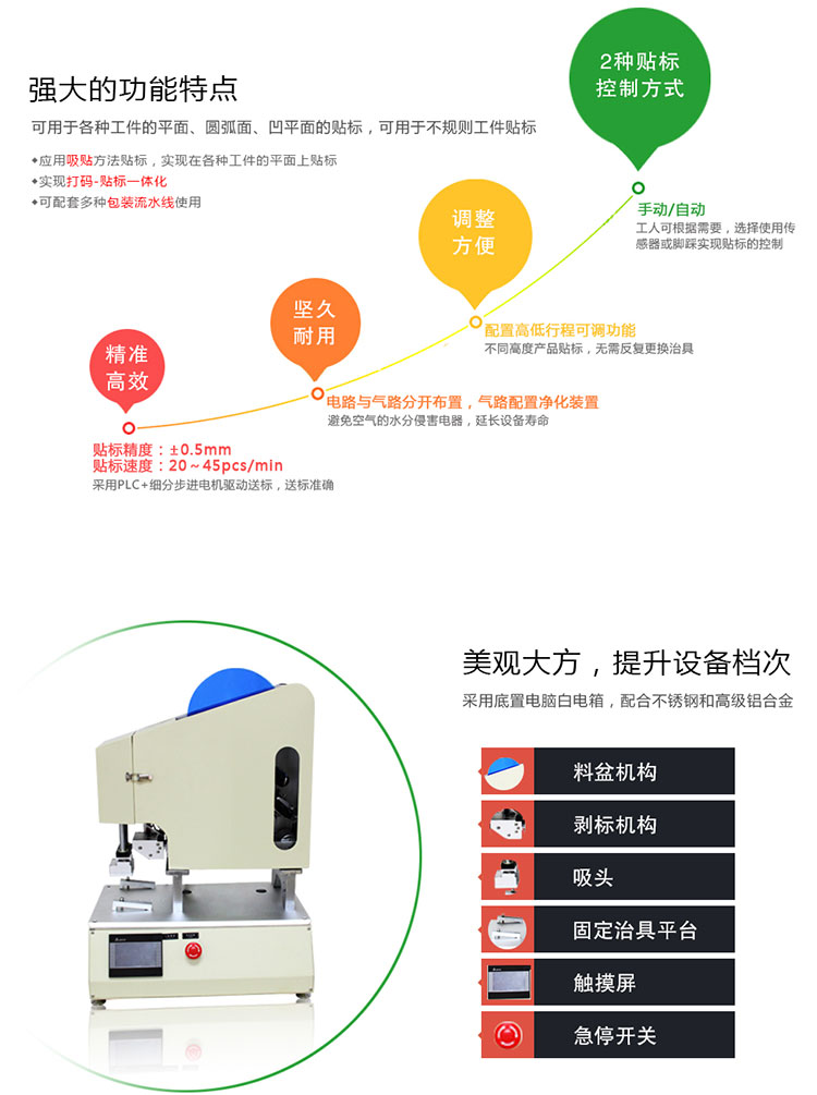 半自動高精度平面貼標機有著以下產品特點: