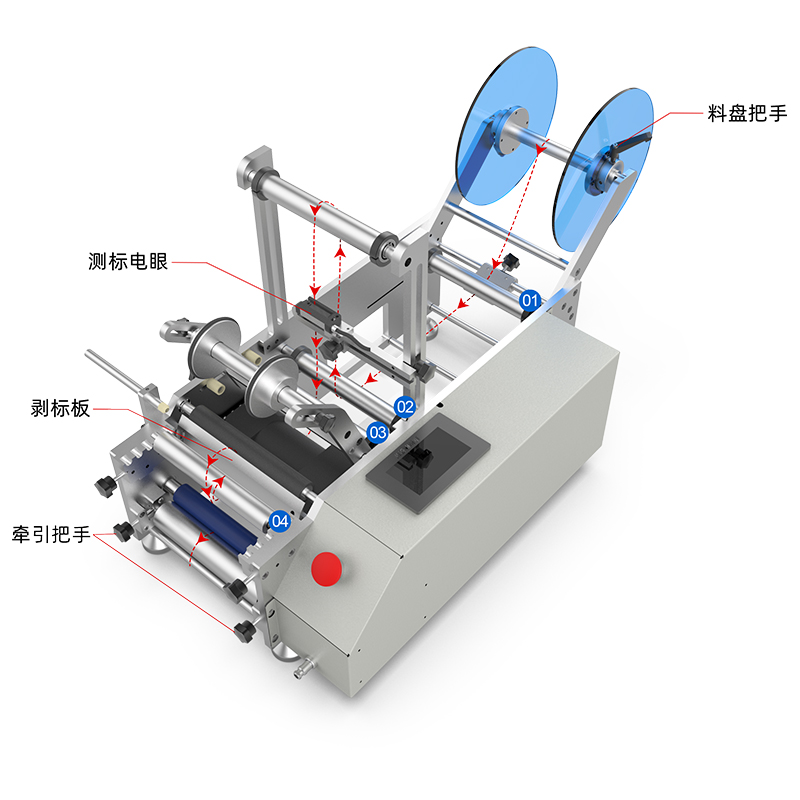 半自動(dòng)圓瓶貼標(biāo)機(jī)(含顯示屏)屬于半自動(dòng)貼標(biāo)機(jī),適用于各種規(guī)格的圓柱形物體貼標(biāo),特別適用于PET瓶、塑料瓶、玻璃瓶、金屬瓶等圓瓶貼標(biāo)可實(shí)現(xiàn)全周/半周貼標(biāo)、圓周正背面貼標(biāo),正背標(biāo)間距可隨意調(diào)整。廣泛應(yīng)用于食品、化妝品、化工、醫(yī)藥等行業(yè)。其造型設(shè)計(jì)美觀大方,采用鋁合金支架和功能強(qiáng)大的操作系統(tǒng)。下面佼佼者半自動(dòng)圓瓶貼標(biāo)機(jī)廠家小編將詳細(xì)介紹半自動(dòng)圓瓶貼標(biāo)機(jī)的繞標(biāo)方法。