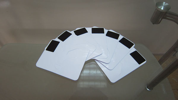 下圖是我公司全自動磁卡貼標機對銀行卡材質的卡片進行貼標的樣品圖片。